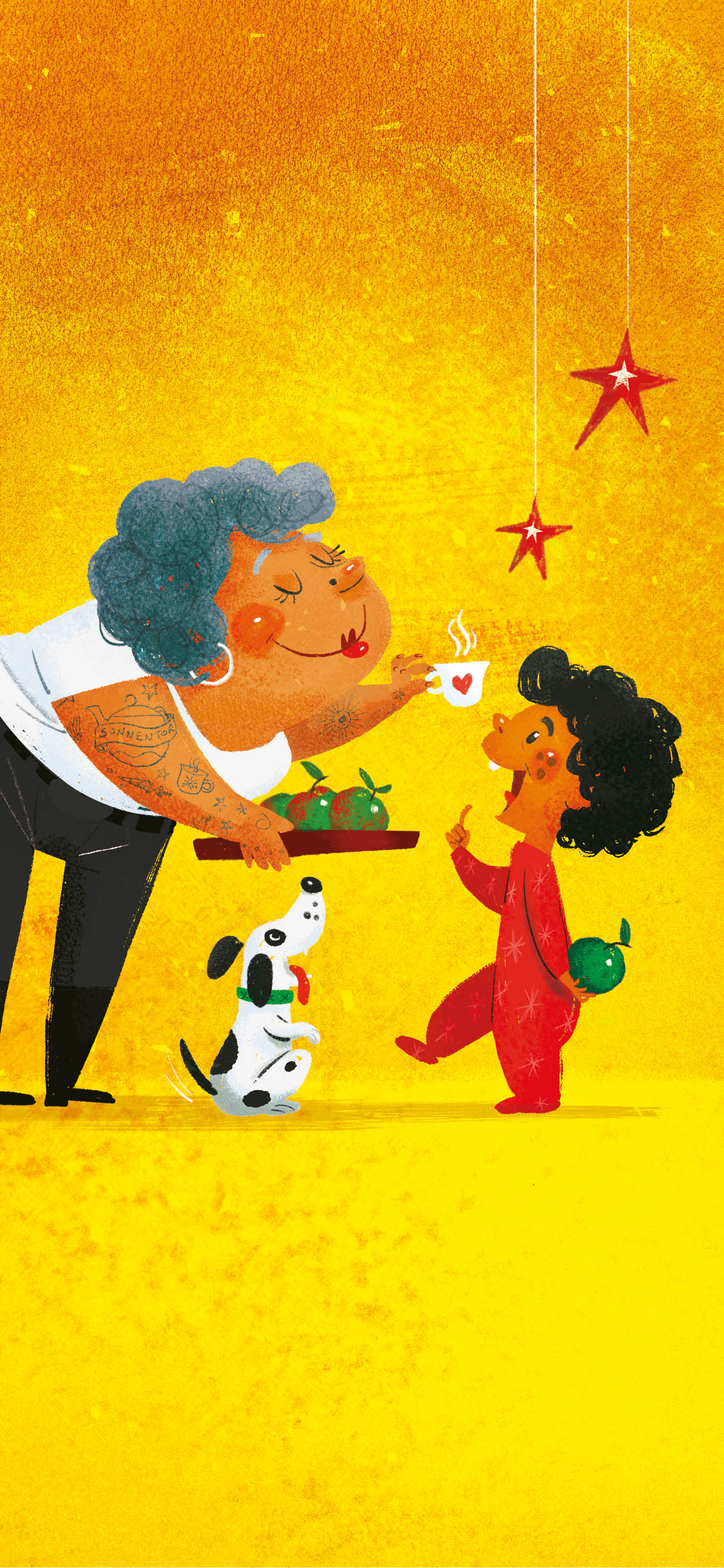 Foto vom Tee Adventkalender Türchen Nummer 23. Auf dem gelben Türchen ist ein Engel und ein Baby zu sehen. | © SONNENTOR