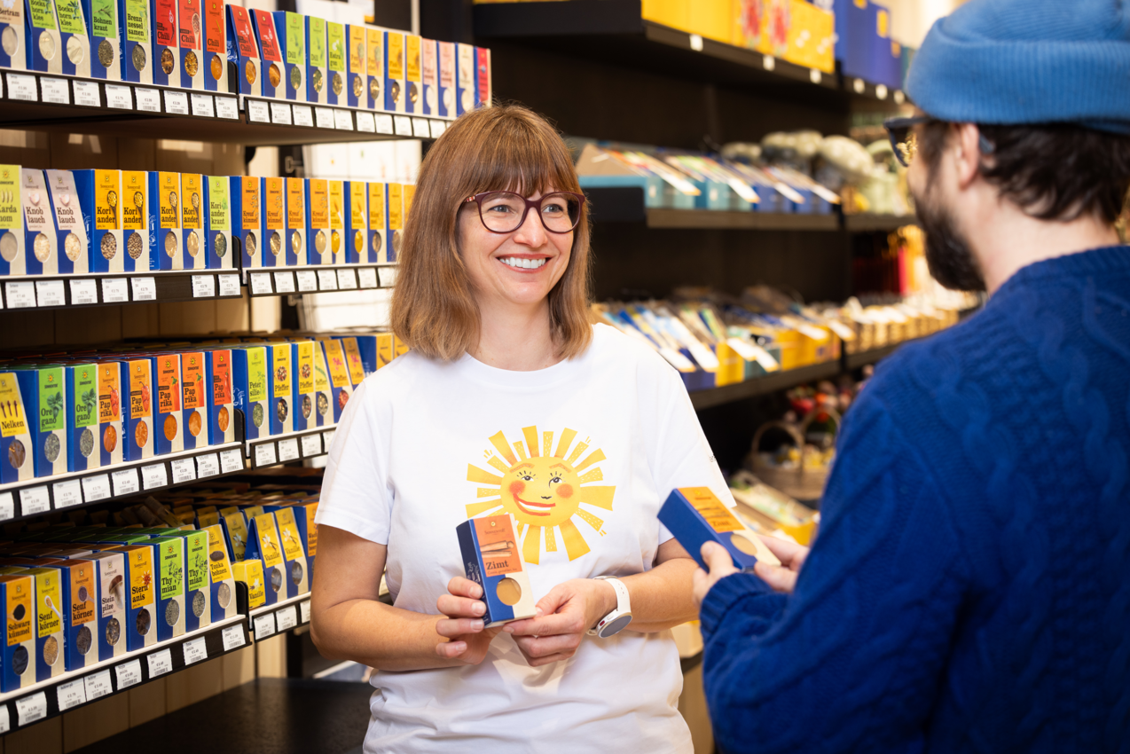 In the SONNENTOR shop Innsbruck, all the organic products are united under the laughing sun logo, from "Cheery Tea" and "Viennese Temptation Coffee" to “Spices Advent Calendar” and the popular children's line “Bio-Bengelchen” and a variety of creative gift ideas and accessories.