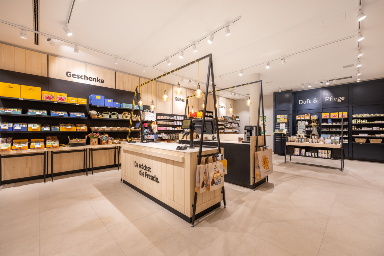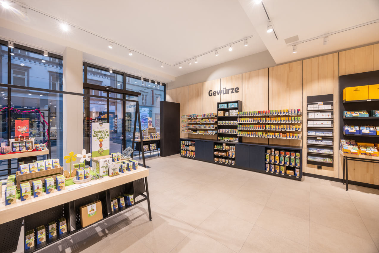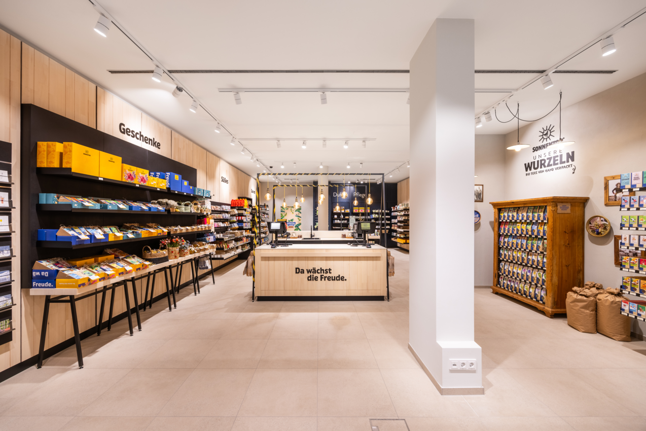 The products are displayed in the unique atmosphere that is characteristic of the SONNENTOR brand: enjoyment meets rural tradition and contemporary design. In addition to tea, coffee and organic juices, there are also some organic Waldviertler specialties on offer which can be enjoyed in the cozy ambience of the shop - and those who wish to savour sweet temptations on the spot, can go on a quick culinary discovery trip to the Waldviertel. Take a break from the busyness of shopping and enjoy the slowed atmosphere at SONNENTOR Innsbruck.